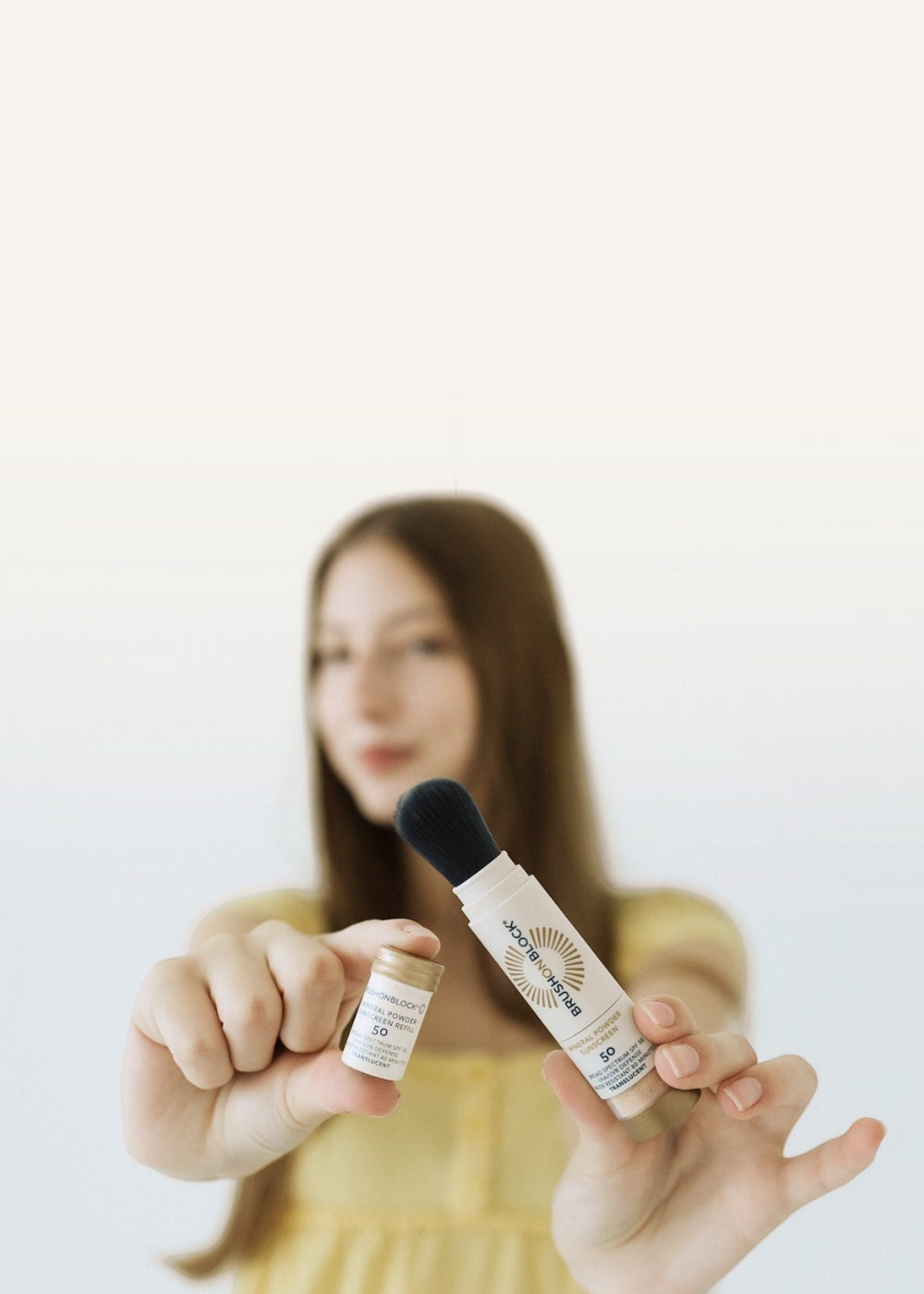 Take-it-anywhere SPF 30 mineral powder sunscreen now with skin loving ingedients: