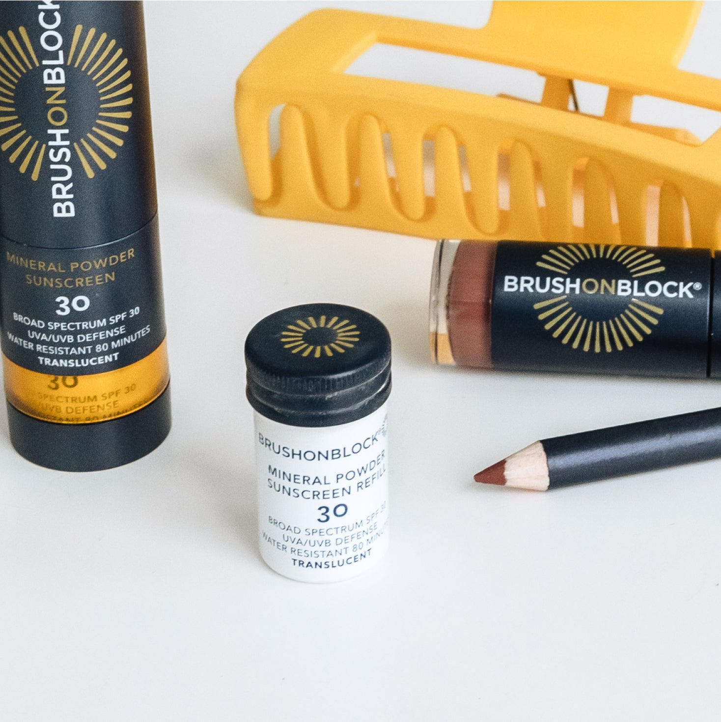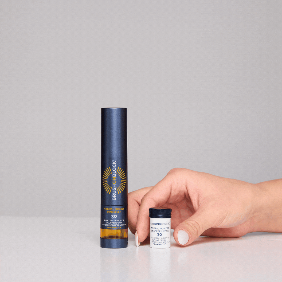 - Use up your refill. Our aluminum refill pods might be small, but they pack the same amount of sunscreen powder as the full-size brush.