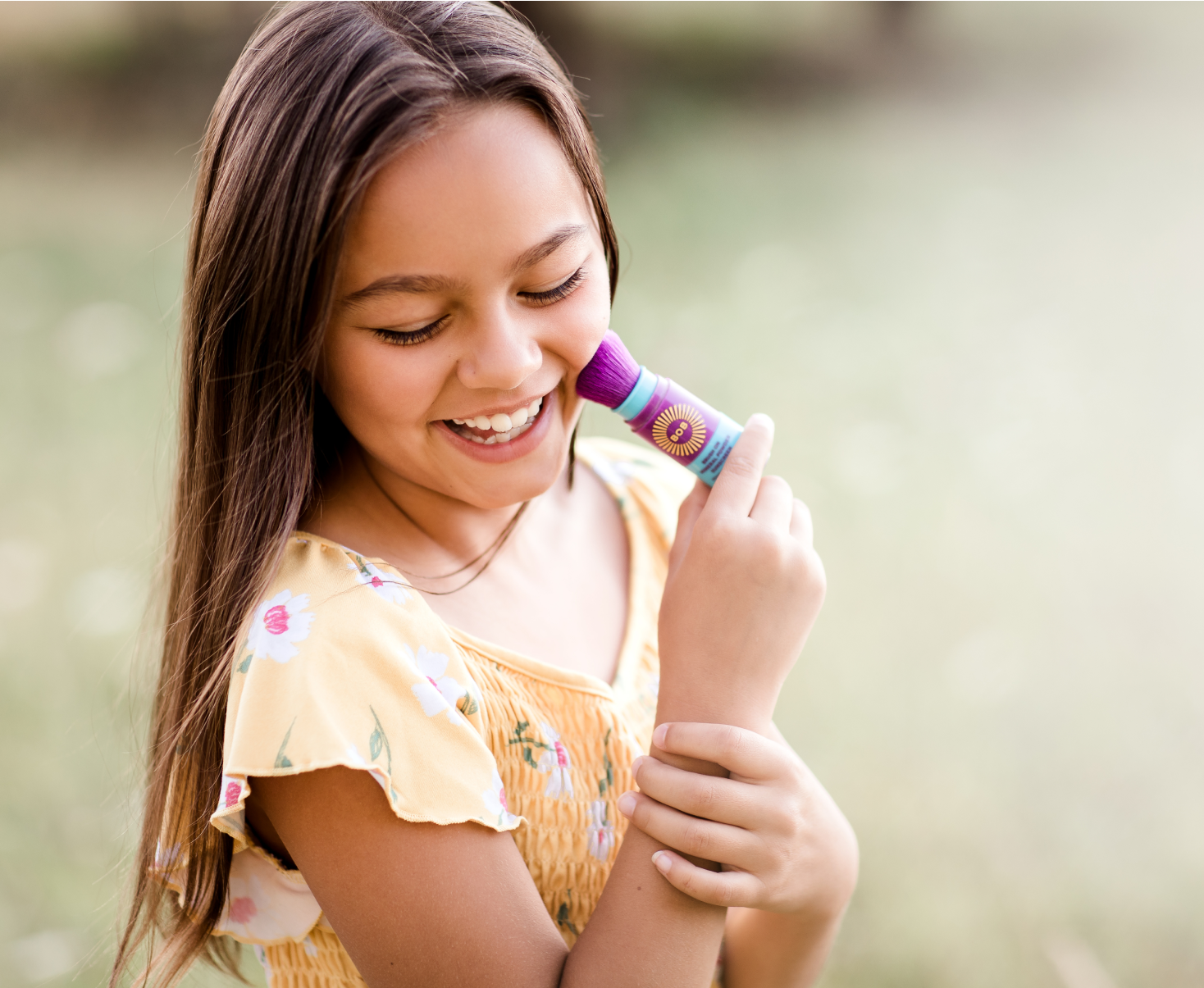 When sunscreen no longer means goopy cream that takes forever to rub in, but instead means being “tickled” by a fluffy purple brush, it becomes easier to stand still for a few minutes. Bonus: it won’t run into their eyes and sting while they play!