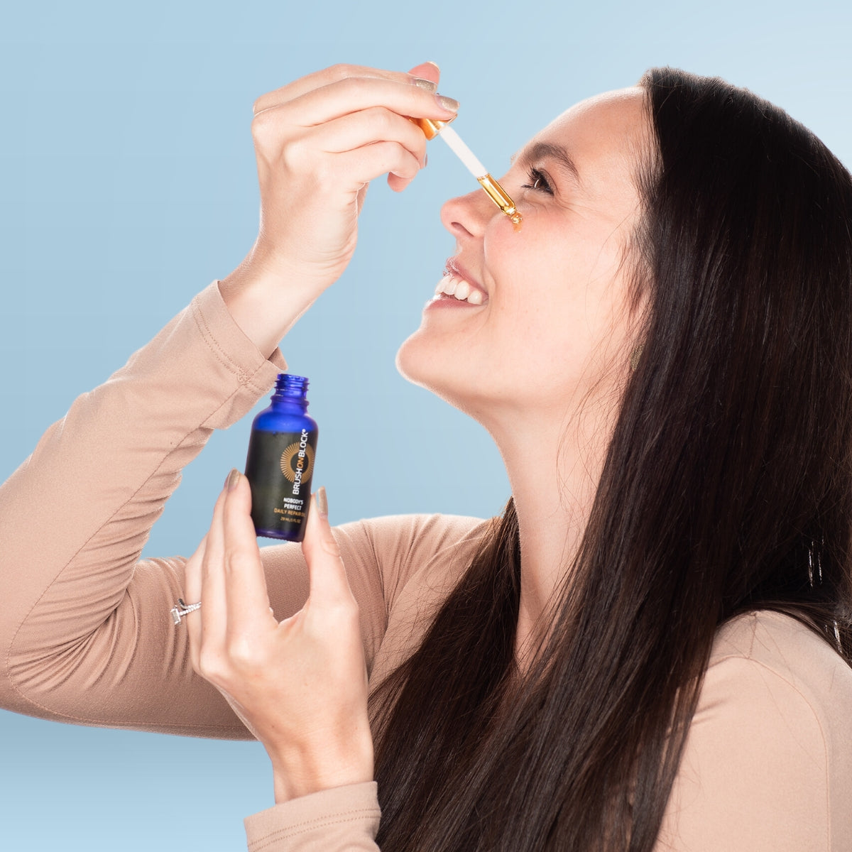 We want your skin to receive the most value from Nobody’s Perfect, so we recommend that you apply it to clean, dry (or slightly damp) skin. This will allow for maximum absorption of all the ingredients, with no barrier between your skin and the oil. However, if you prefer to wear your facial oil over your moisturizer, please do so!