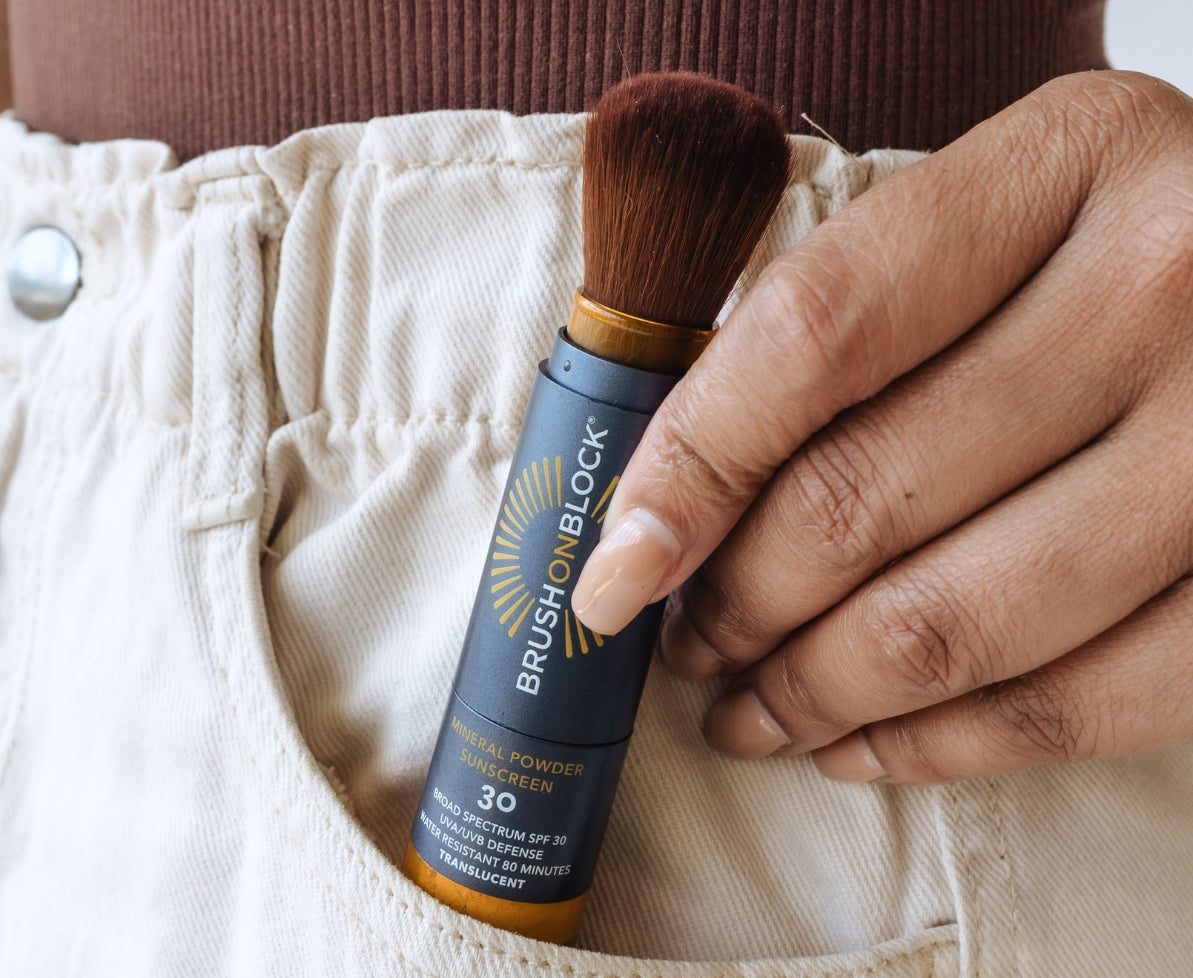 Since it is both a powder, and a mineral sunscreen product, Brush On Block is not absorbed into the skin, but stays on the surface. This makes it less likely to cause skin irritation and breakouts. In many cases, sunscreen irritation is caused by chemical sunscreen active ingredients (oxybenzone, avobenzone, octinoxate, to name a few), which must be absorbed into the skin to be effective.