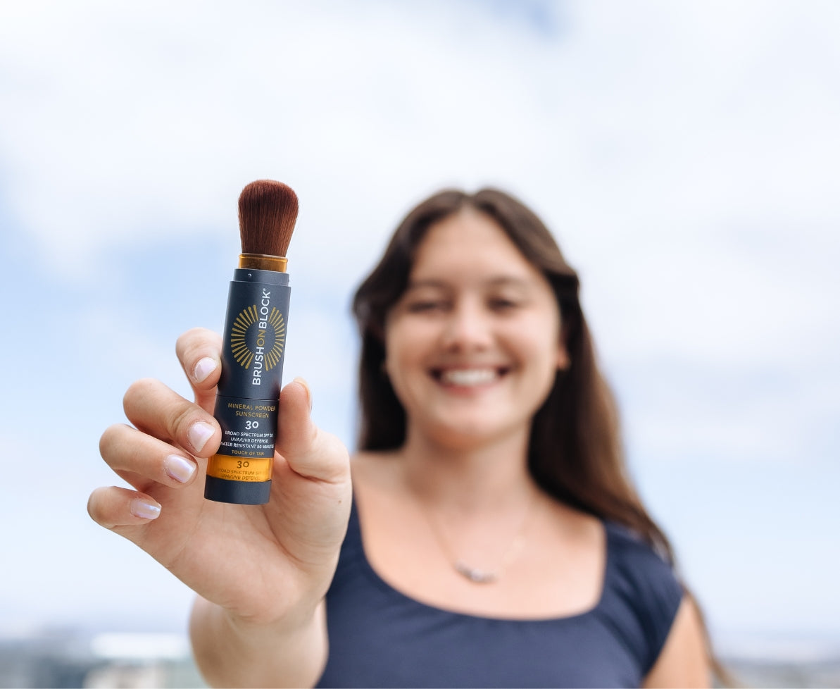 Yes, but… There is nothing wrong with applying the powder to your body—especially really exposed areas like the tops of your feet, knees and shoulders, but to use it as your primary sunscreen all over your body would take a very long time and use your powder quite quickly. That’s up to you, though! We designed Brush On Block for face, neck, arms and hands, plus those places that need a little extra coverage.